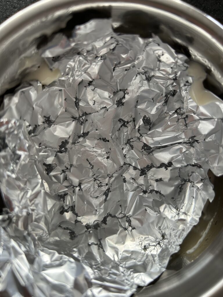 ➡️ Die Folge: Die Alufolie wird angegriffen, es entstehen kleine Löcher.